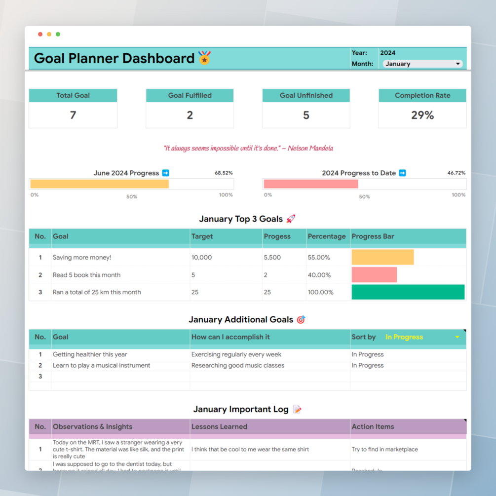 Goal Planner: Google Sheets Template for Tracking & Achieving Your Yearly Goals